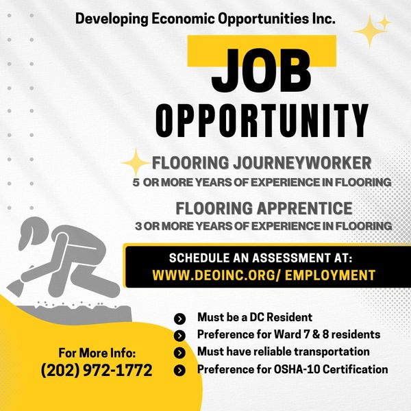 We work with Developers, General Contractors, Sub-Contractors and other community partners to help match qualified DC Residents to construction-related jobs and training programs for residents who are not yet qualified. Click below to schedule a time to come talk to us about current opportunities in your community!